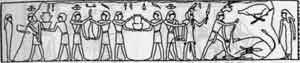 изображения восходят ко времени фараона Сахура (V династия). Центральный элемент